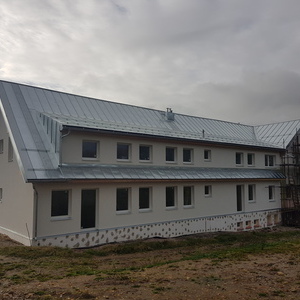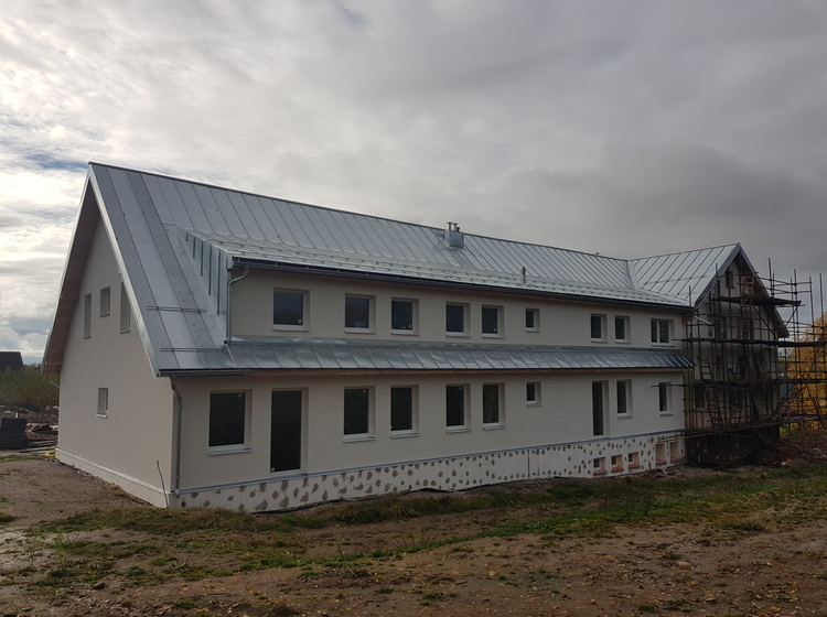 V říjnu byla dokončena střecha, instalace nových oken, fasáda na štítech budovy a její východní a severní straně.