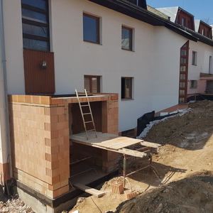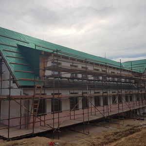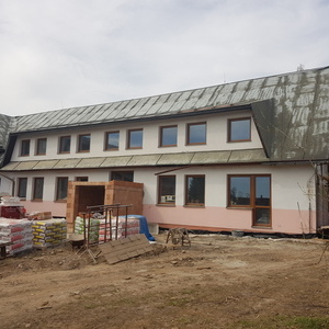 Za posledních několik dní postupují práce především venku - v zadní části domu je hotová nová střecha. Na straně k parkovišti vznikla dvě nová zádveří. V květnu budou pokračovat práce na střeše a přípojkách, uvnitř pak stříkání omítek a příprava rozvodů elektřiny, vody a plynu.
