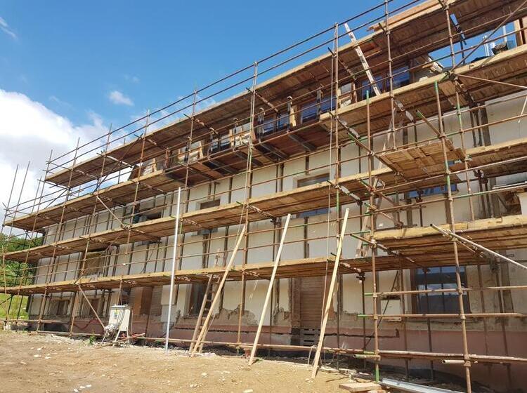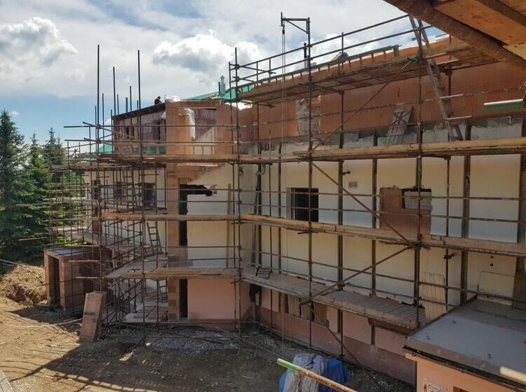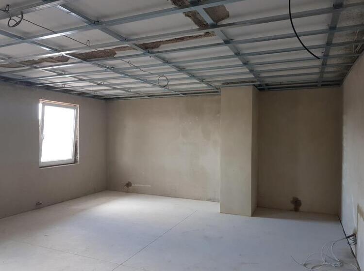 Ve třetím patře probíhají poslední dispoziční změny a rýsuje se tak byt 3.02 s krásným výhledem a atypickým obývacím pokojem. Budoucí byt 2.01, který bude vzorovým bytem proběhlo vylití podlah, oprava omítek a příprava rozvodů pro instalaci kuchyňské linky. Na začátku září tak bude vzorový byt hotový a připravený pro první návštěvníky. Při prohlídkách tak uvidíte byt v podobě v jaké budou i všechny ostatní při dokončení projektu.